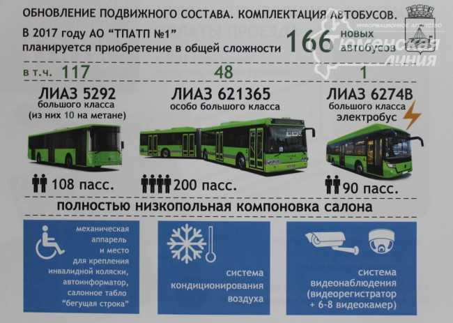 На дорогах областной столицы появятся 117 автобусов ЛиАЗ 5292 на 108 пассажиров (из них десять на метане), 48 автобусов ЛиАЗ 621365 на 200 человек. В планах приобретение электробуса ЛиАЗ 6274В на 90 пассажиров.