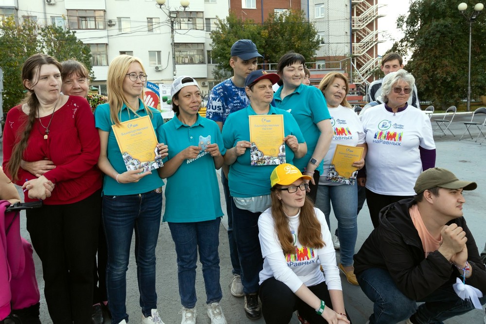 "Шанс", помощник организатора Ольга Елынина и педагог Дворца творчества и спорта "Пионер", основатель инклюзивного клуба "Горизонт" Светлана Жукова. "Мы много лет сотрудничаем и с областной организацией инвалидов, и с клубом "Шанс", - сказала Светлана Владимировна. - Наш союз становится только крепче и надёжнее, потому что мы действительно делаем очень нужное, важное и значимое дело. Даже погода нам сегодня благоволит, а это ещё раз доказывает то, что мы идём верным путём. Хочу всем пожелать веры в себя, шанса на успех и, конечно же, новых горизонтов!".