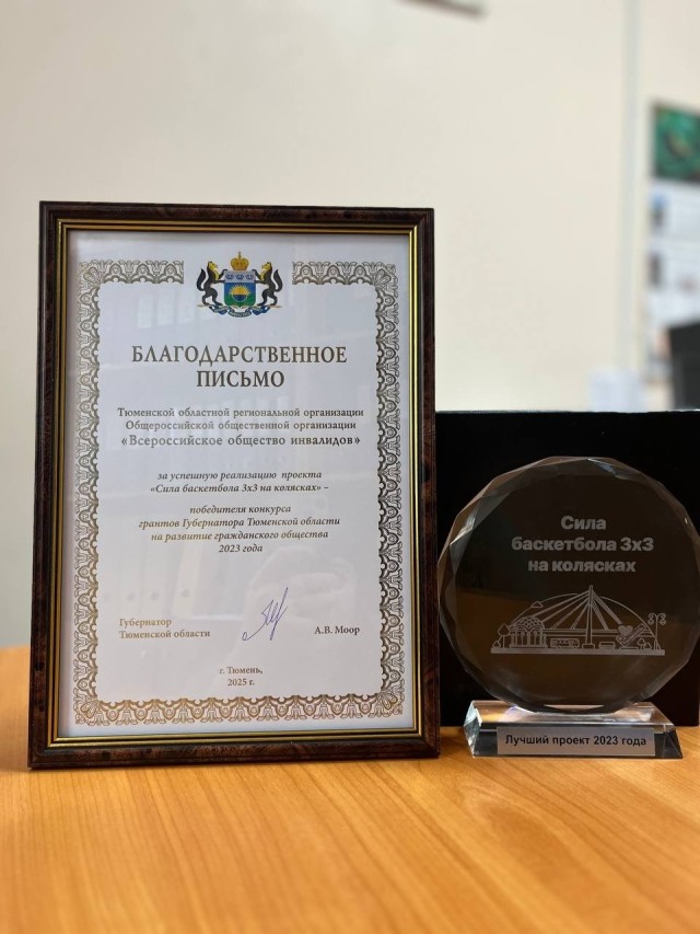 В числе лучших, попавших в топ-10 из 113 прошедших экспертный отбор Департаментом социального развития Тюменской области и получивших высокую оценку народного голосования на платформе "Диалог" - https://www.dialog-urfo.ru/ , проект Тюменской областной организации ВОИ и спортивно-оздоровительного клуба инвалидов "Шанс" "Сила баскетбола 3X3 на колясках".