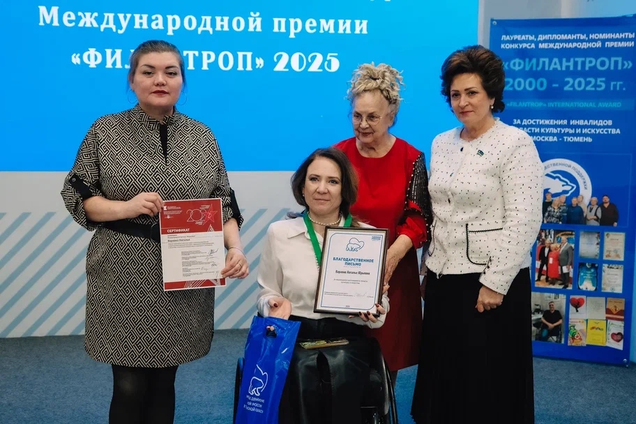 И только участников 2025 года, к счастью, заметили и решили выразить внимание и признательность. Участник Премии этого года, автор уникальных художественно-изобразительных работ, член Калининской окружной организации ВОИ Раиса Лебединец обратилась с инициативой к председателю Тюменской городской Думы Светлане Ивановой о поддержке участников конкурса и организации для них праздничного мероприятия с вручением сертификатов и благодарностей от гордумы. Инициативу Светлана Владимировна поддержала - мероприятие организовали. Правда, благодарности и подарки были предусмотрели только для участников "ФИЛАНТРОПА" 2025 года.