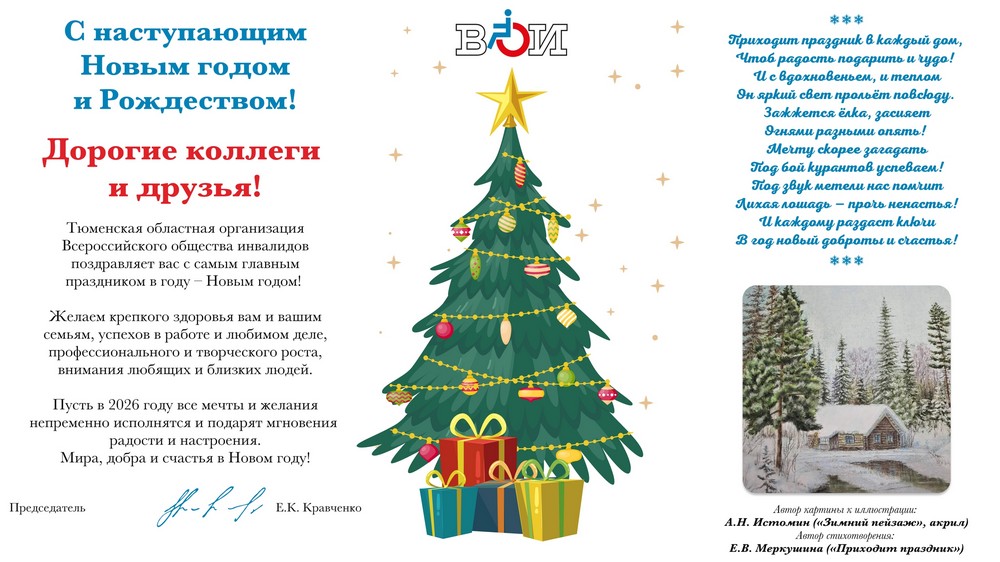 Дорогие коллеги и друзья! Тюменская областная организация Всероссийского общества инвалидов поздравляет вас с самым главным праздником в году -...