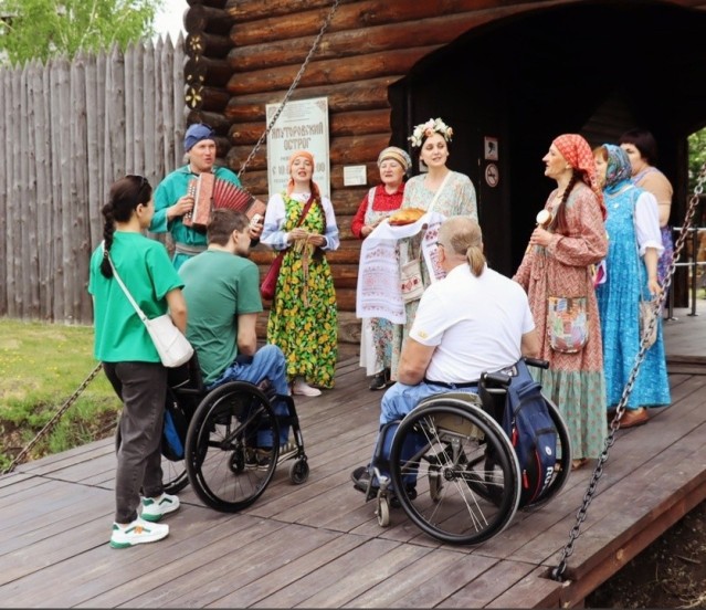Первое знакомство с обширной общественной работой и деятельностью ВОИ гости получили в Тобольской районной организации. Здесь коллег встретили, как и требует сибирское гостеприимство, - хлебом-солью: с караваем, песнями, гармонью, гитарой и местными традициями.